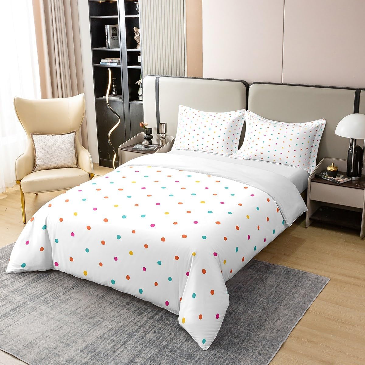 The eye-catching polka dot pattern is not only visually appealing but also adds a sense of playfulness and charm to your bedroom. Itâs a versatile decoration that complements a wide range of themes and styles.